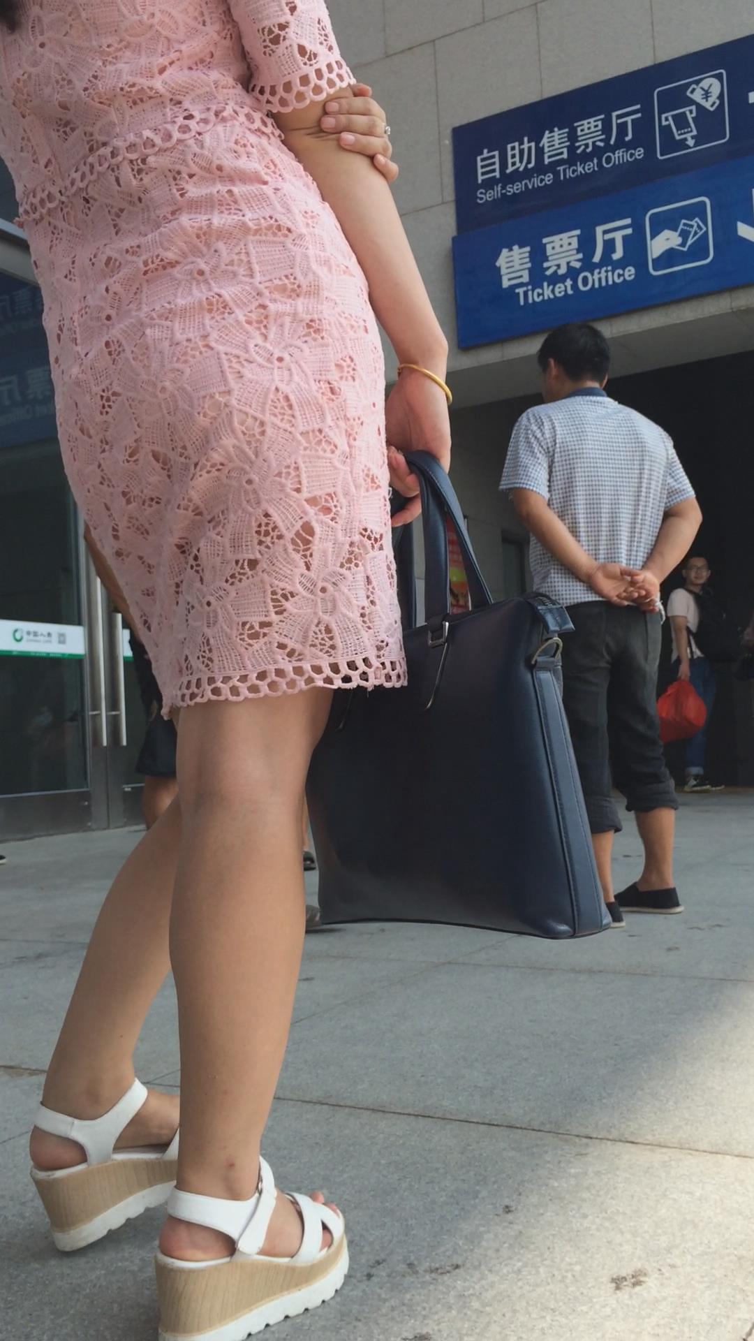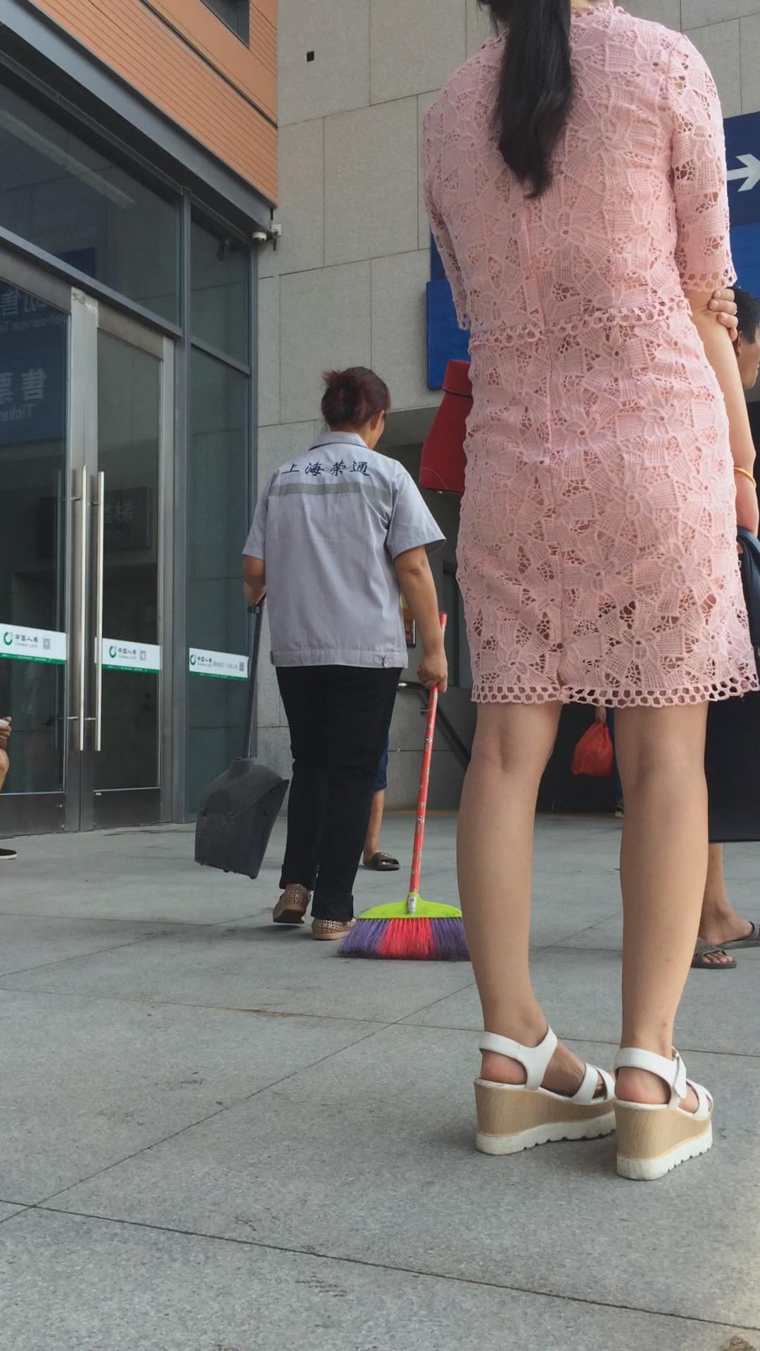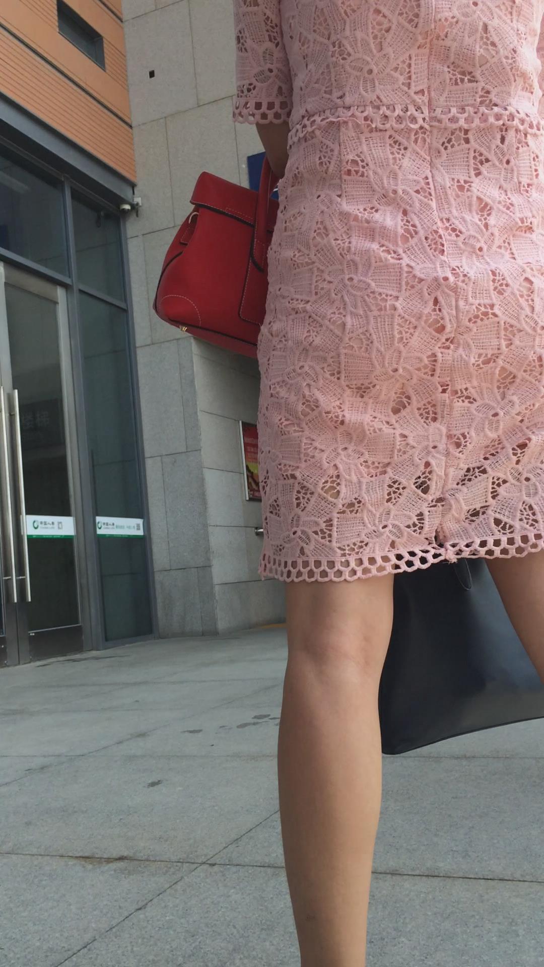 街拍粉色镂空连衣裙光腿美女 编号2418 |