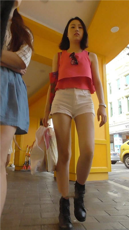 【编号696】街拍皮肤白皙的长腿白热裤MM |