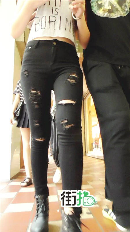 【编号740】街拍时尚紧身破洞黑色牛仔裤MM |