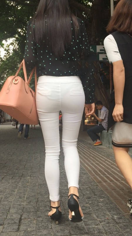 【编号772】街拍紧身翘臀白裤黑长直美女 |