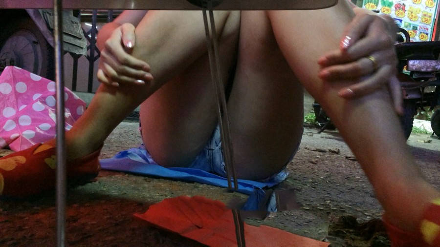 【编号869】街拍摆地摊的牛仔热裤太紧了 |