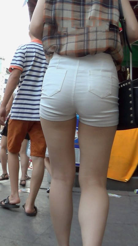 【编号920】街拍白色短裤紧绷肥臀高跟踩得响 |
