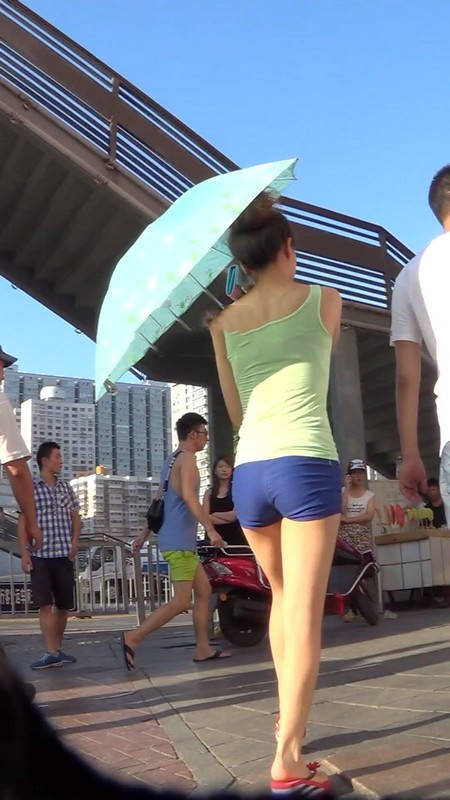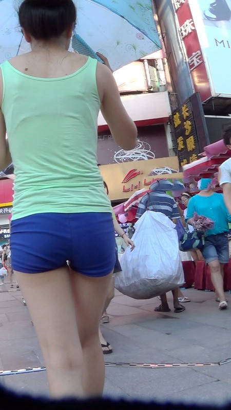 【编号992】街拍皮肤白皙的超短裤紧身辣妹 |