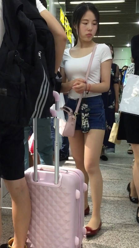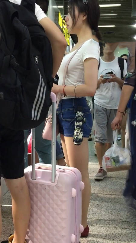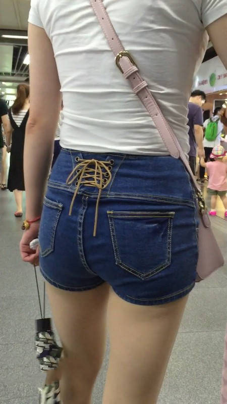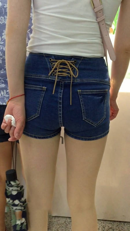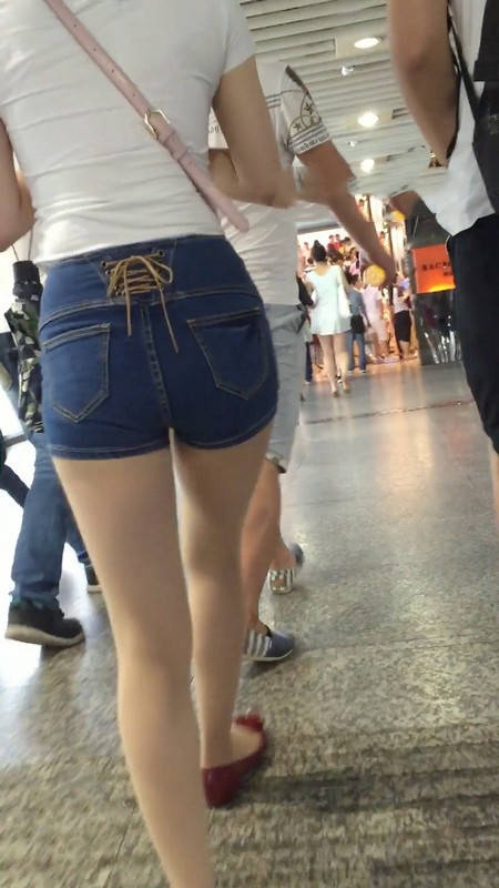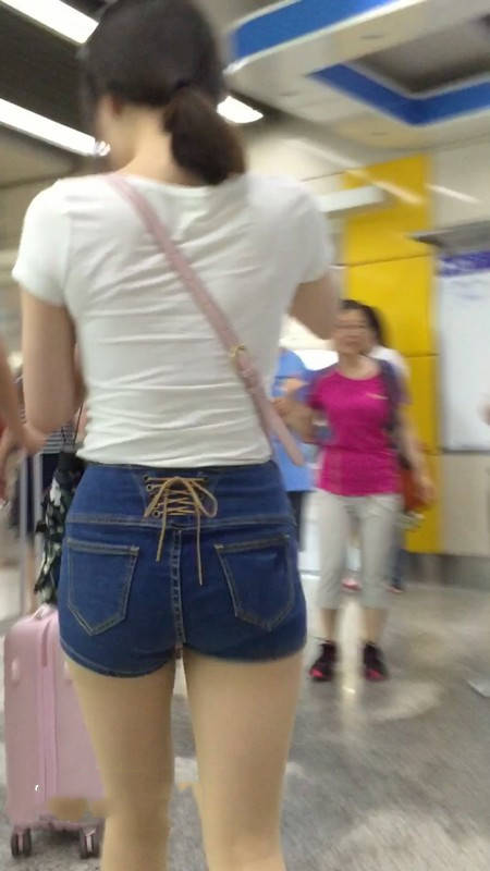 【编号1012】街拍地铁站的牛仔热裤皮肤白皙美女 |