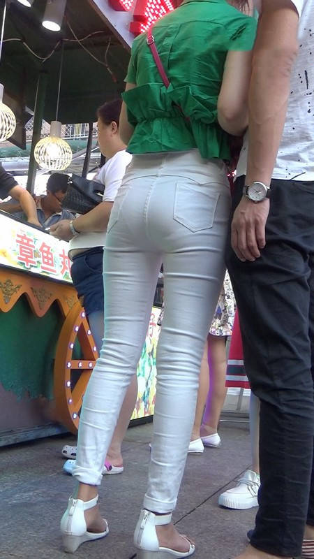 【编号1046】街拍白色紧身裤性感翘臀 |