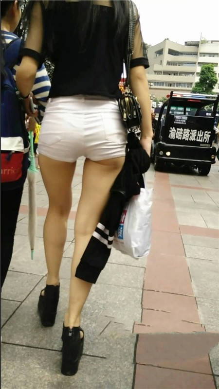 【编号1062】街拍白色紧身热裤长腿美女露月牙 |