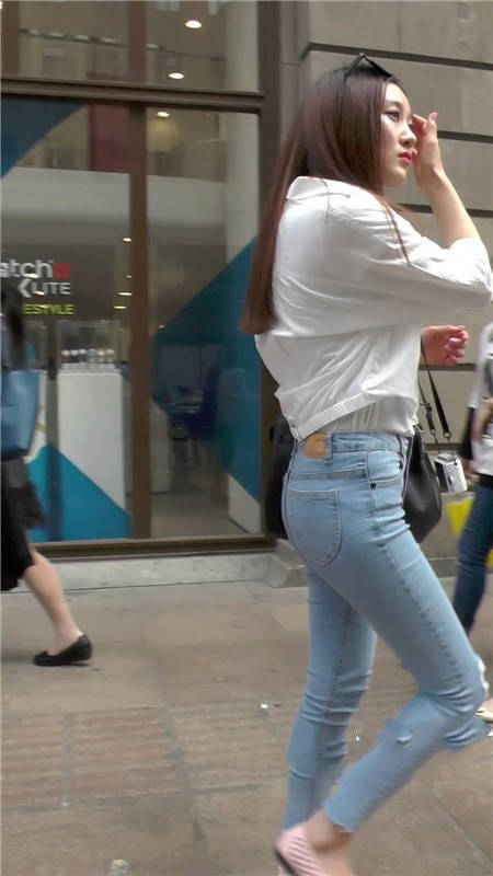 【编号1088】街拍紧身牛仔裤美女胸口挂着相机 |
