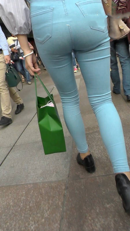 【编号1109】街拍浅蓝紧身牛仔裤长腿翘臀小妹 |