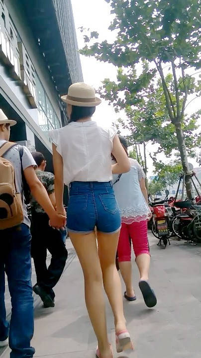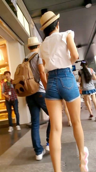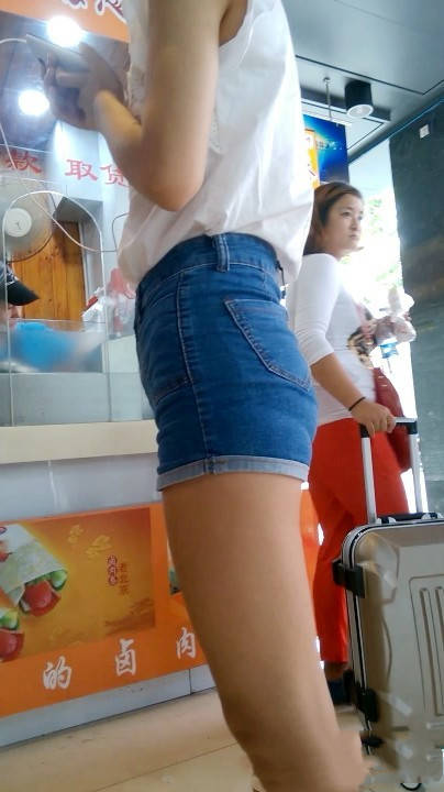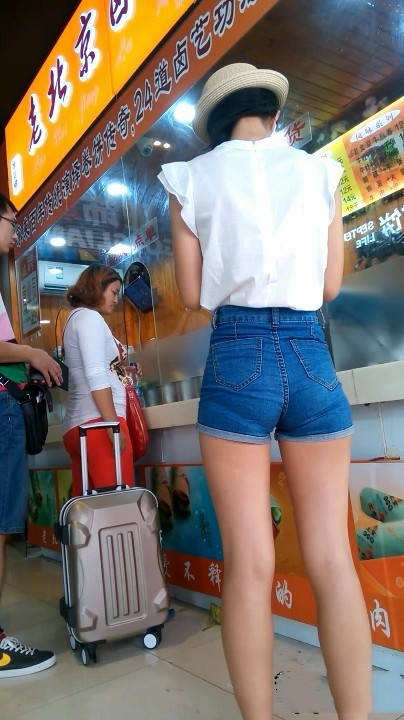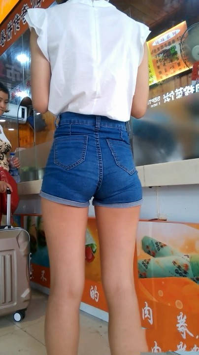【编号628】满分长腿苗条紧身蓝牛热裤美女 |