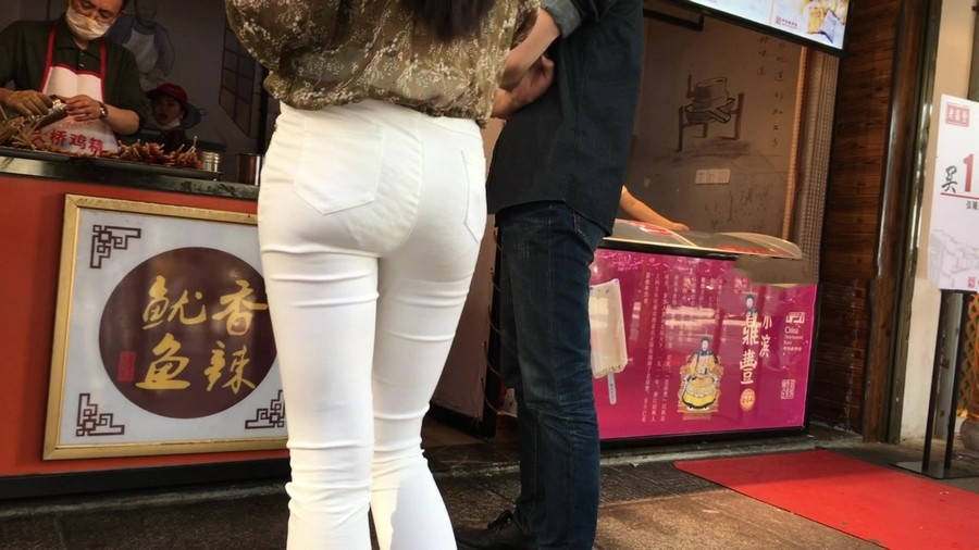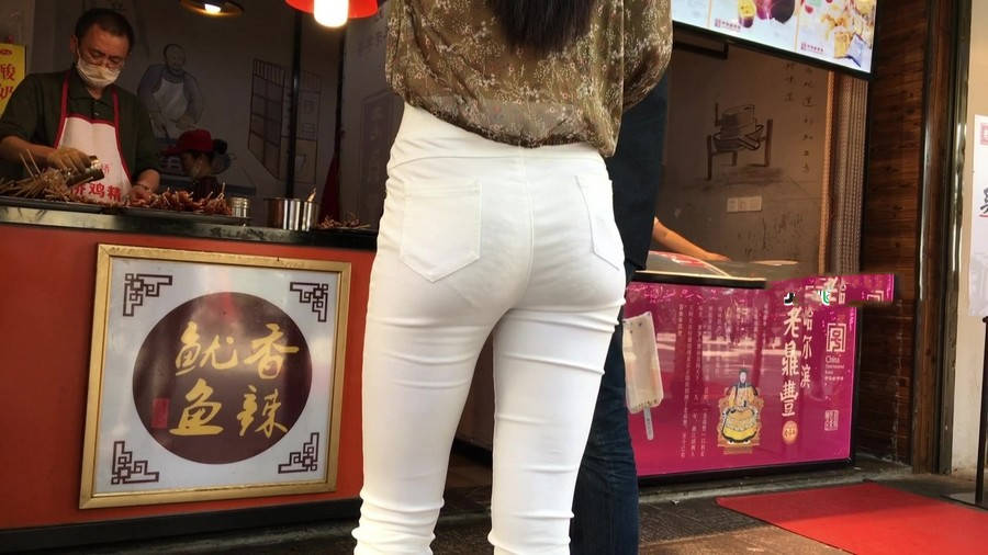 【编号1216】街拍白色紧身裤长腿翘臀苗条女友 |