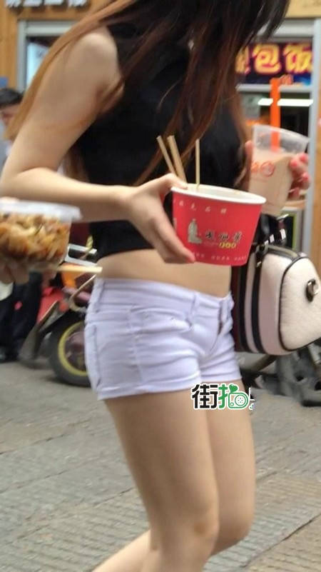 【编号1217】街拍白色紧身热裤长发苗条女同学 |