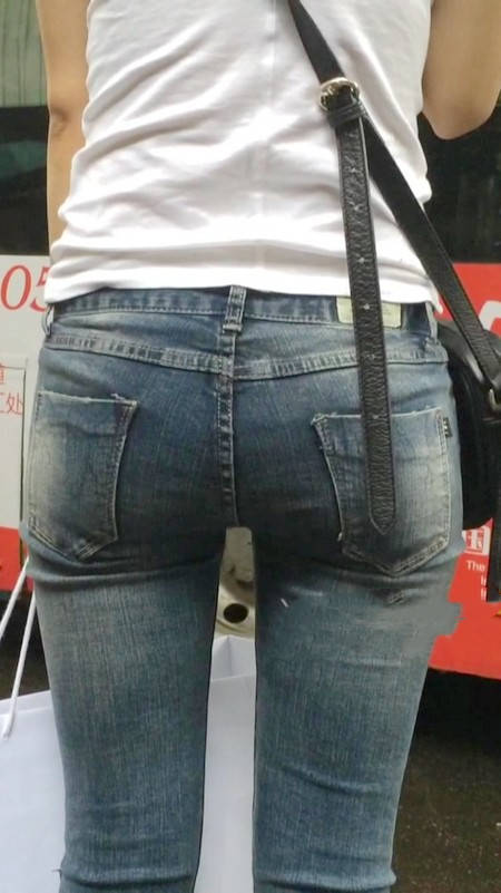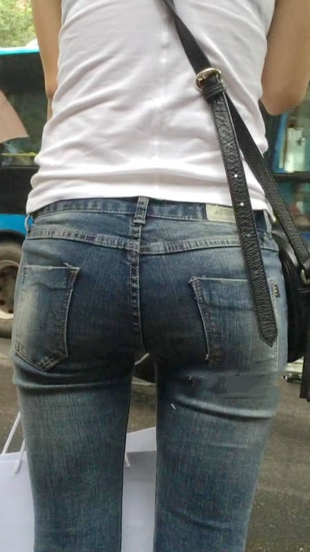 【编号1218】街拍紧牛白T苗条小妹等公交 |