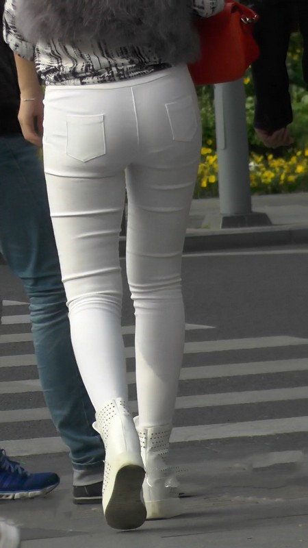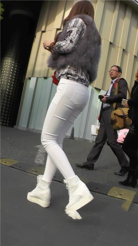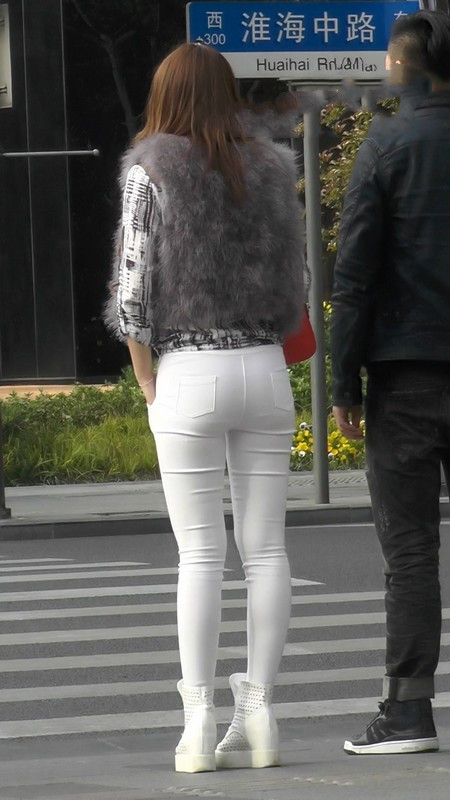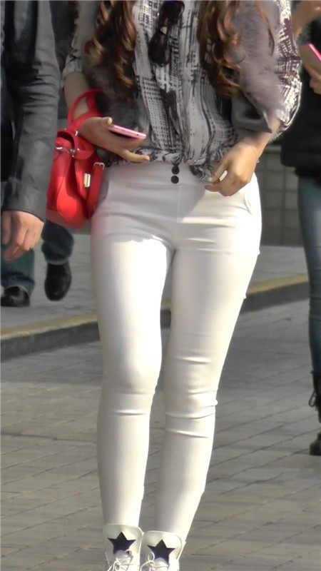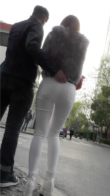 【编号1086】街拍白色紧身裤MM男友的手放哪里 |