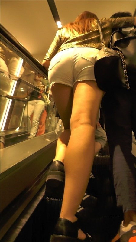 【编号1149】街拍白色紧身热裤丰满小妹上扶梯 |