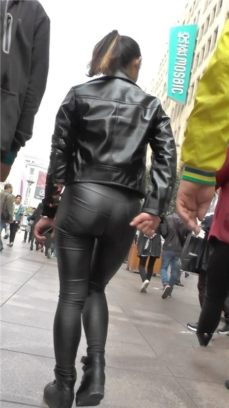 【编号1194】街拍紧身皮裤肥臀MM低角度跟拍 |